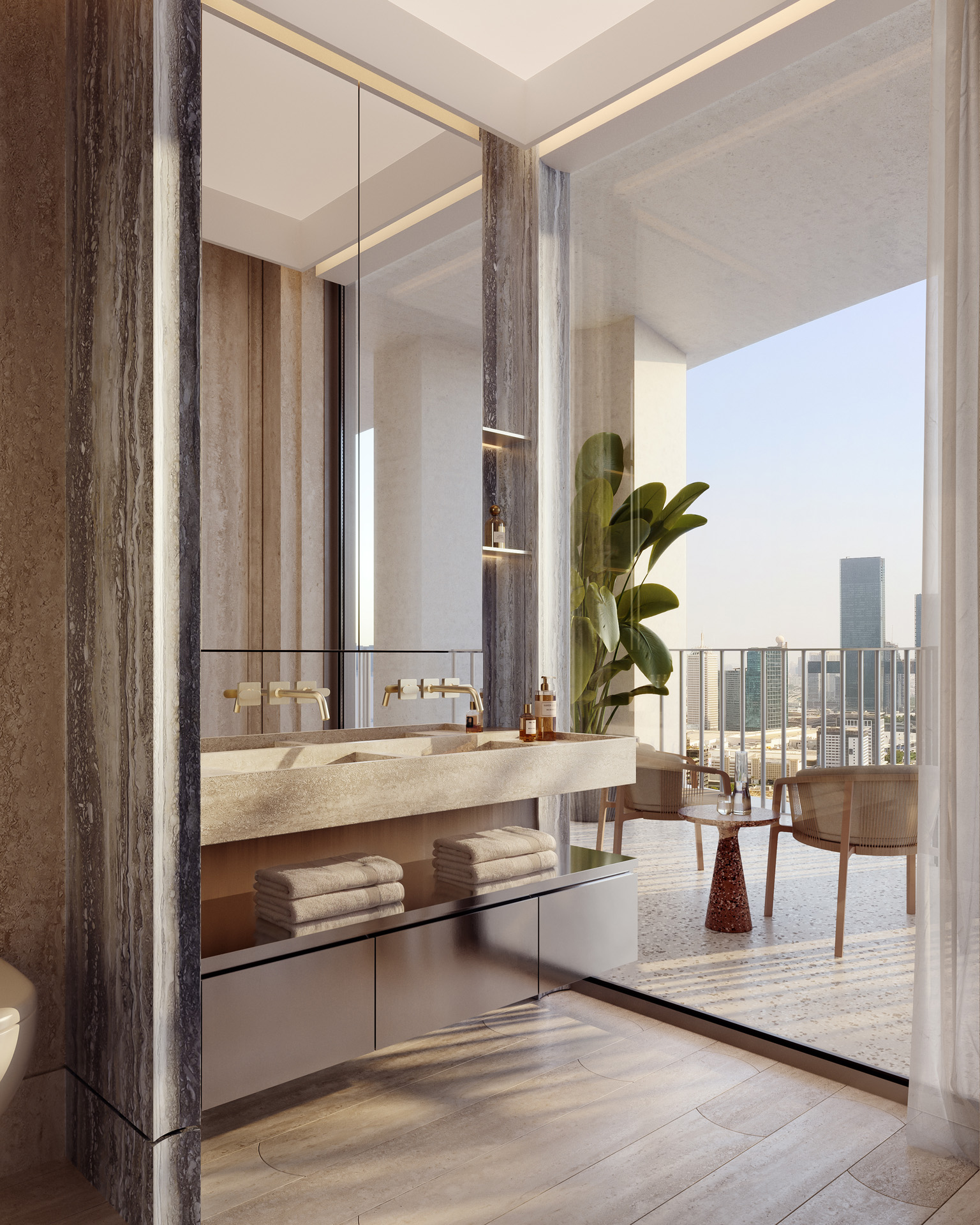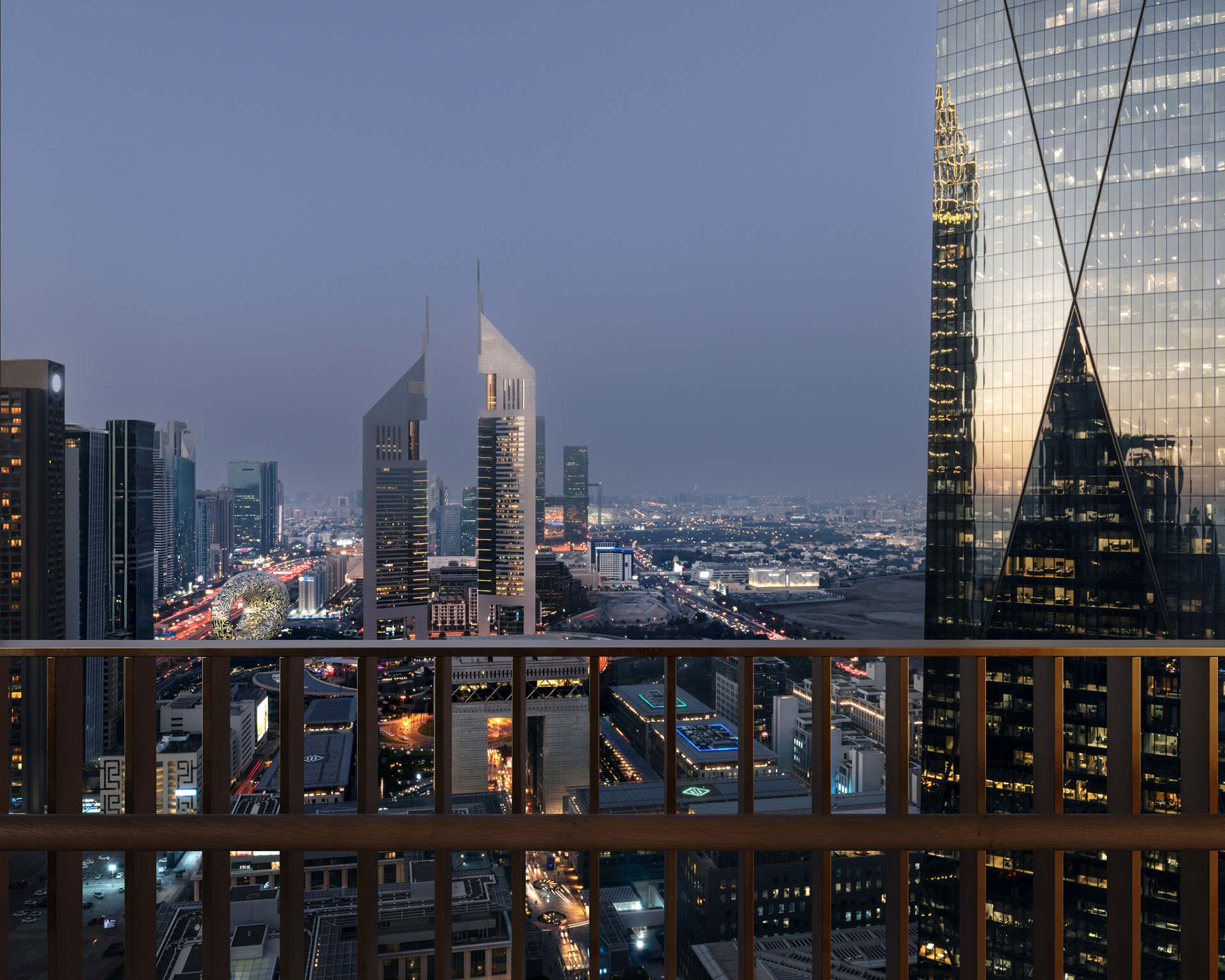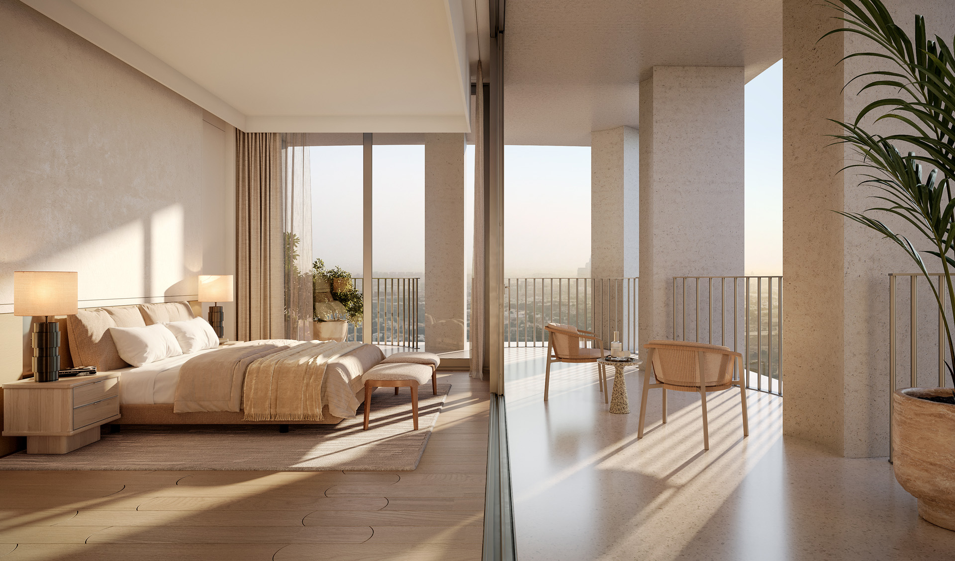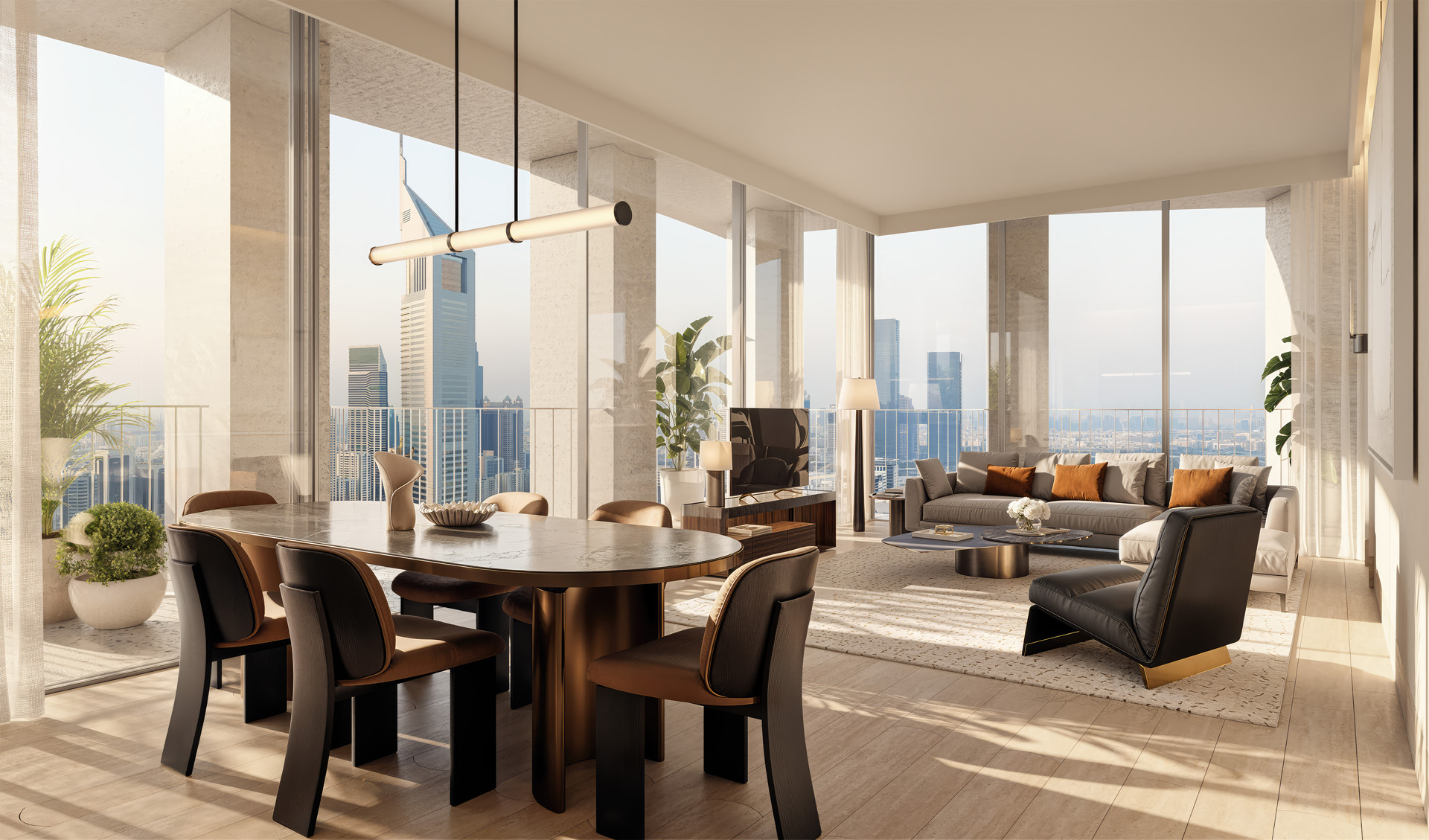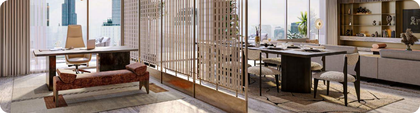 Defined by lush interconnected courtyards, the development offers both tranquil wellness spaces and vibrant social environments, mirroring the dual rhythm of its surroundings. Residences feature high ceilings, flowing layouts, and wraparound terraces, with panoramic views across DIFC’s skyline or Za’abeel’s open horizons.
