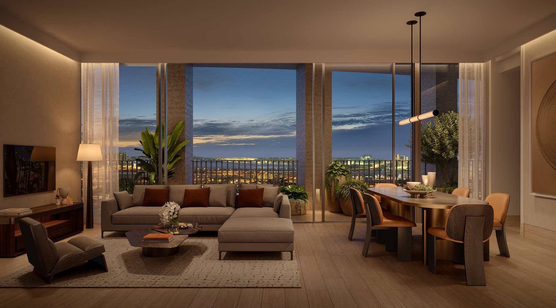 A refined lifestyle with Eden House services, wellness and fitness suites, resort-style pools, landscaped gardens, family spaces, and curated dining—supported by 24-hour security.