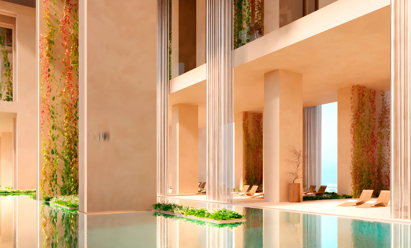A private sanctuary with rooftop swimming and fine dining, subterranean wellness club with pools, sauna and spa, gym and yoga studio, padel tennis, cinema, children’s play area, and dedicated concierge and valet services.