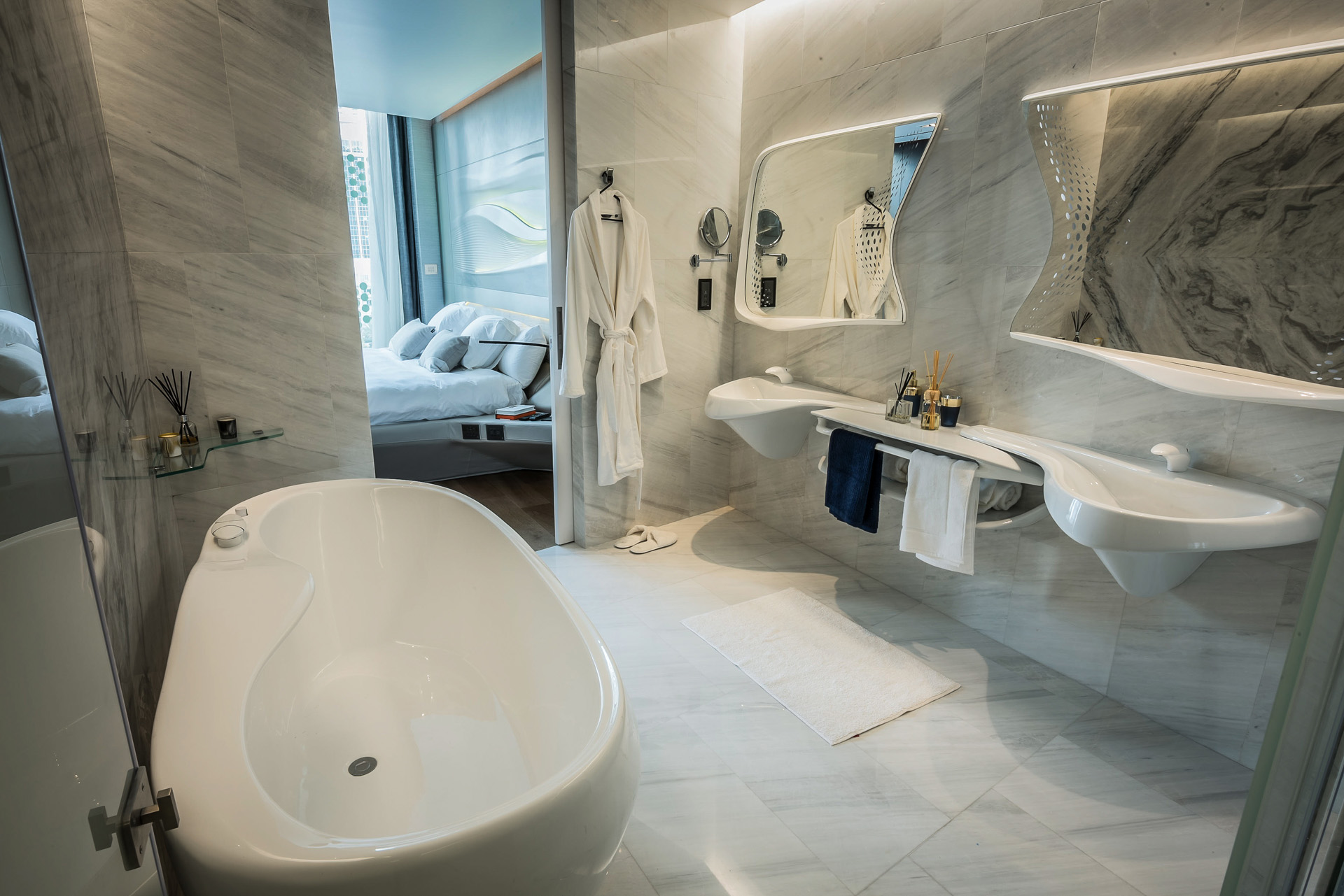 Within this architectural masterpiece lies a limited collection of 96 ultra-luxury residences, ranging from one- and two-bedroom homes to exceptional duplexes and triplexes. Fully furnished and curated by Zaha Hadid, each residence is a livable work of art where sculptural design, advanced technology, and refined comfort converge.