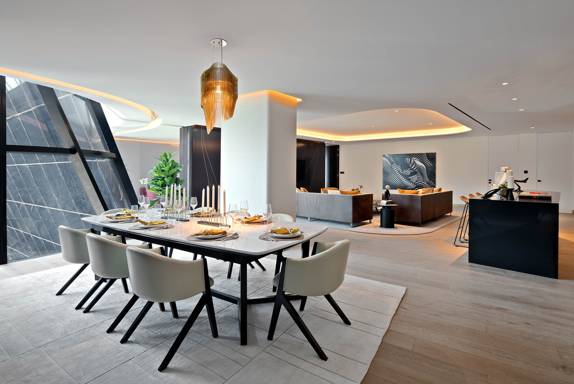 As a mixed-use destination, The Opus offers residents access to hotel-style amenities including a temperature-controlled swimming pool, spa, gym, fine dining, and cultural experiences, complemented by 24-hour concierge and valet services.