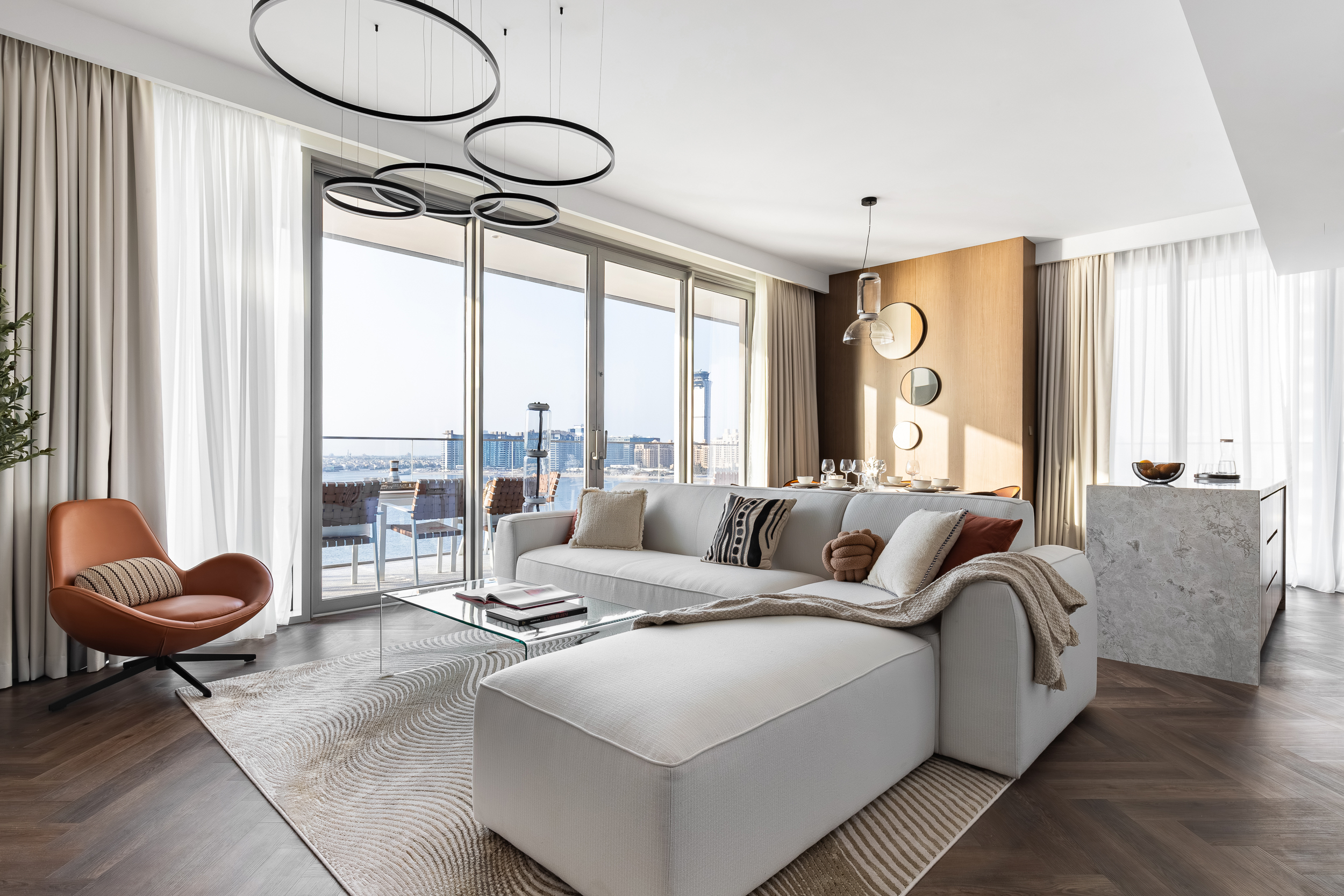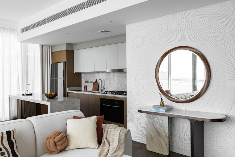 Residents enjoy a 1.5 km private beach, infinity pools, kids’ splash pad, gym, gardens, BBQ areas, cafés, and retail. The gated community is just minutes from Dubai Marina, the Yacht Club, and SZR.