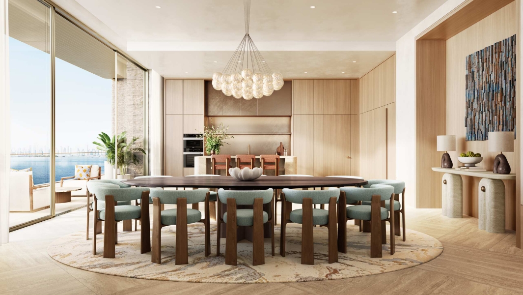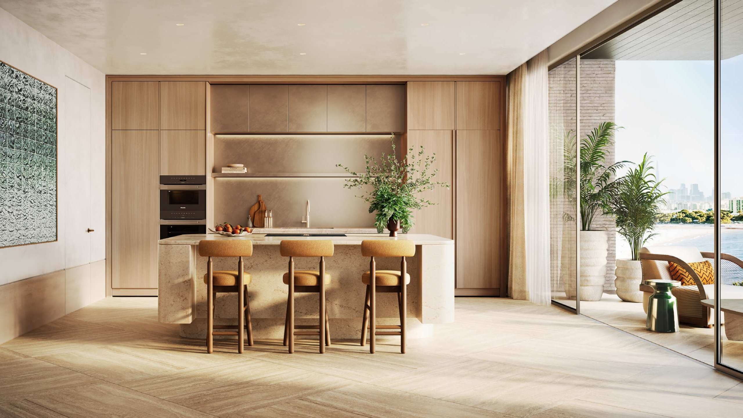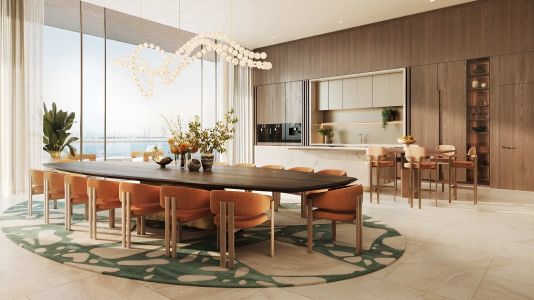 This exquisitely designed residence boasts a spacious open-plan living and dining area, four generously sized bedrooms with built-in wardrobes, and a modern kitchen fitted with high-end finishes. The apartment also features a private balcony offering partial sea and community views, creating the perfect setting to enjoy the serene coastal atmosphere.