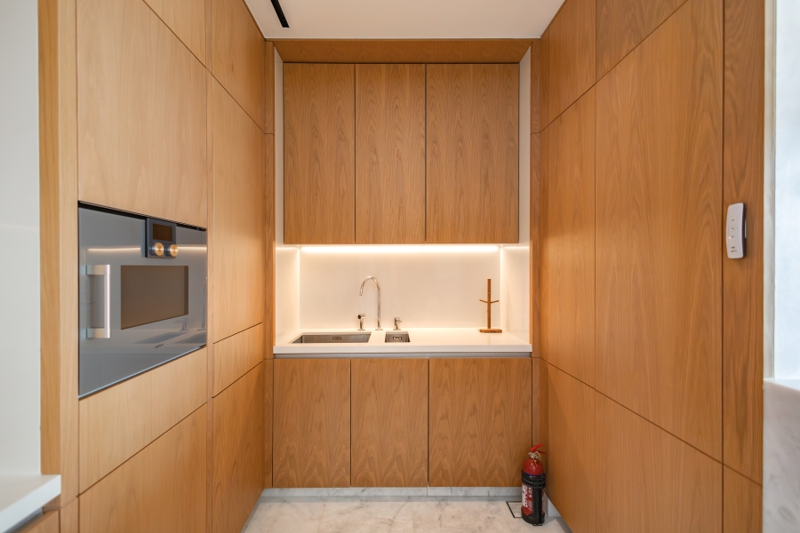 The gourmet kitchen is complemented by a well-appointed working cabinet, offering ample storage and workspace. Additional conveniences include a maid’s room and a dedicated warehouse area, enhancing the home's practicality. With three designated parking spaces, this townhouse ensures both comfort and convenience.