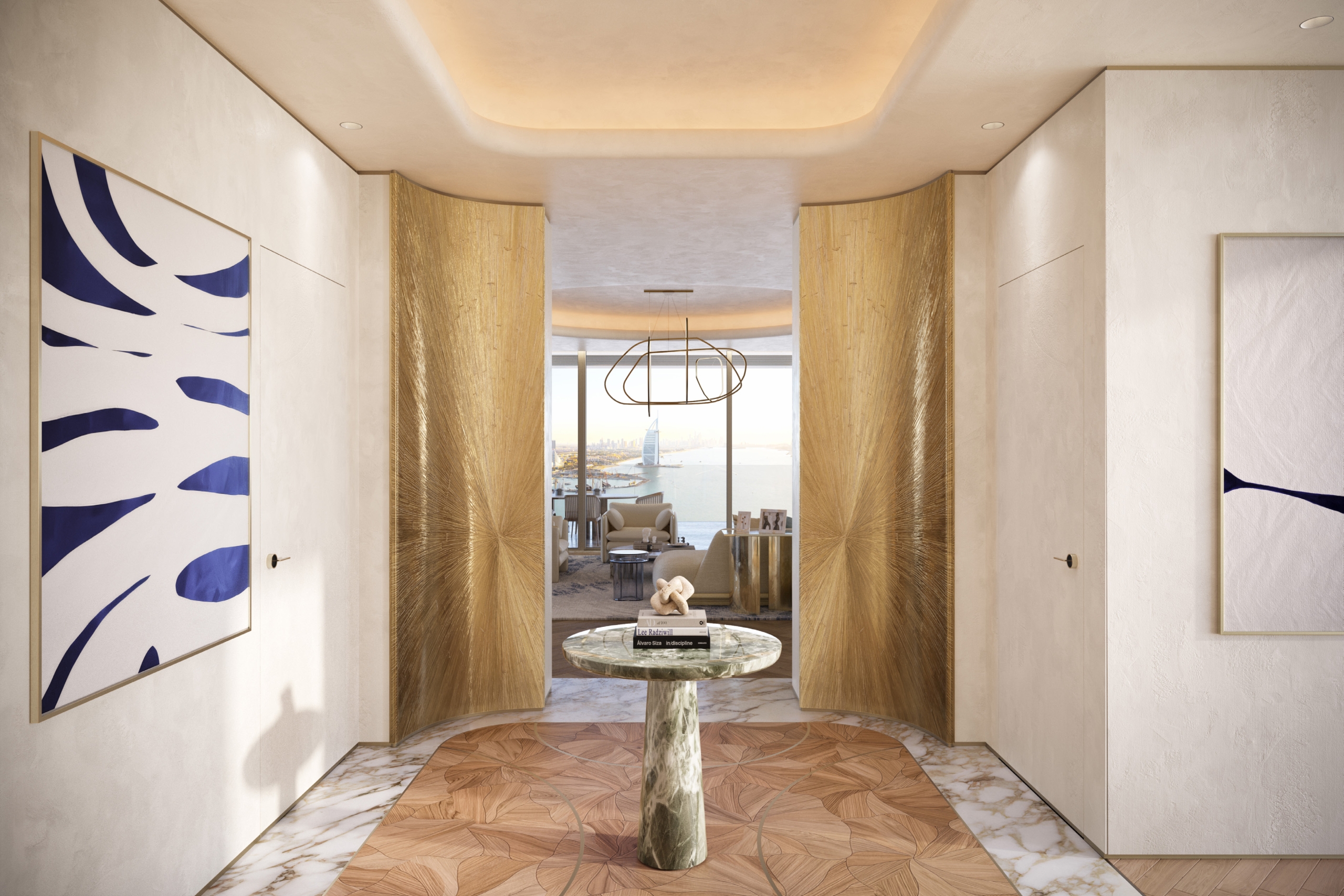 Featuring spacious open-plan living areas, the apartment is bathed in natural light through expansive floor-to-ceiling windows, offering stunning views of the Dubai Water Canal and glimpses of the Burj Khalifa and city skyline. The residence is finished to the highest standards with premium materials including Calacatta marble surfaces, bespoke timber detailing, and integrated smart home technology for seamless living.