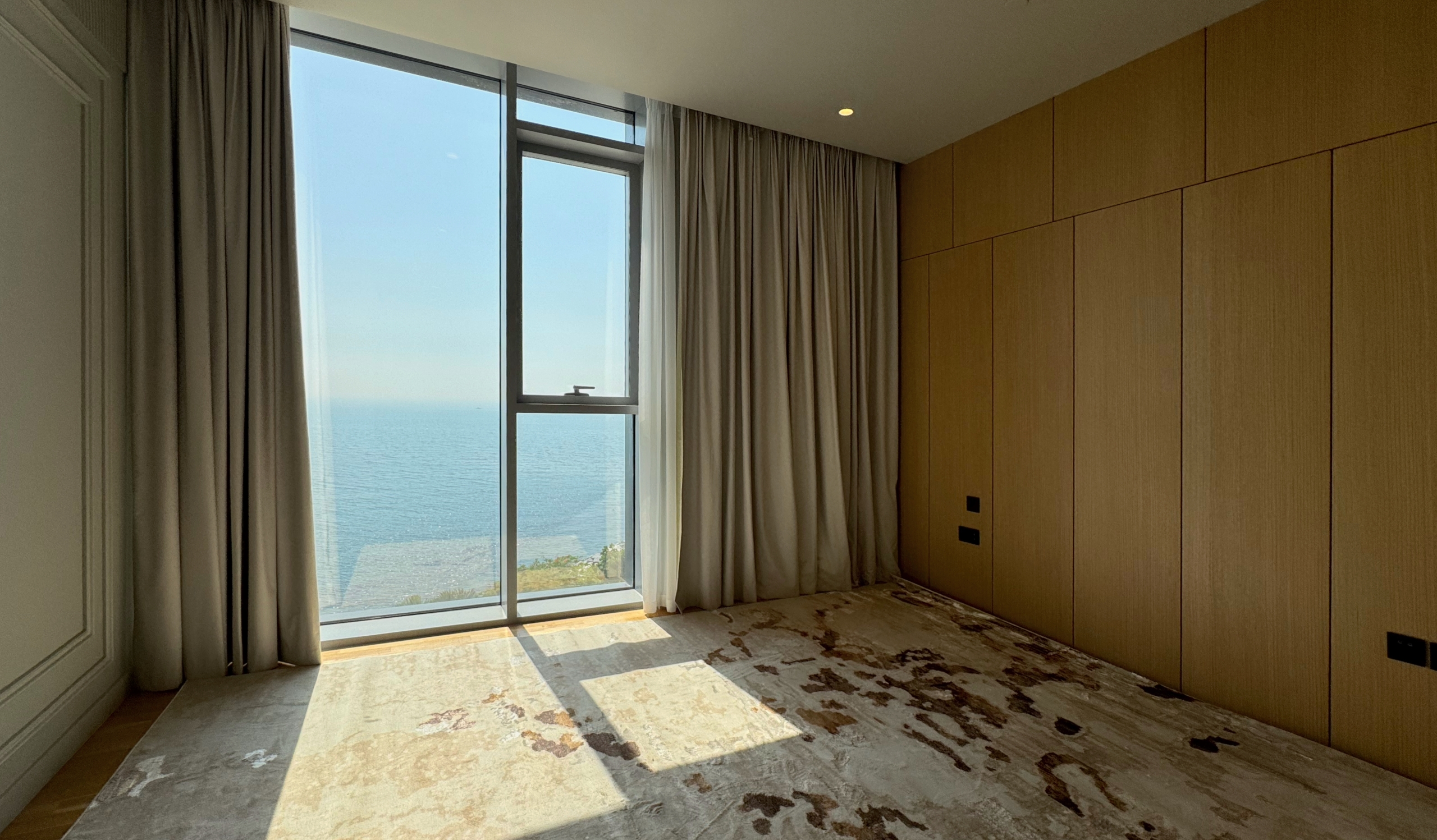 This beautifully appointed 4-bedroom retreat offers a rare combination of space, tranquility, and uninterrupted sea views from both the living area and expansive private terrace—ideal for outdoor dining or quiet relaxation. The bright open-plan living and dining space is thoughtfully designed to maximize light and flow, complemented by a modern kitchen fitted with high-end appliances. All bedrooms are generously sized, complete with built-in wardrobes and elegant finishes, while the master suite offers additional space and privacy. A maid’s room with separate access adds functionality, and the apartment’s quiet corner location ensures a peaceful ambiance.