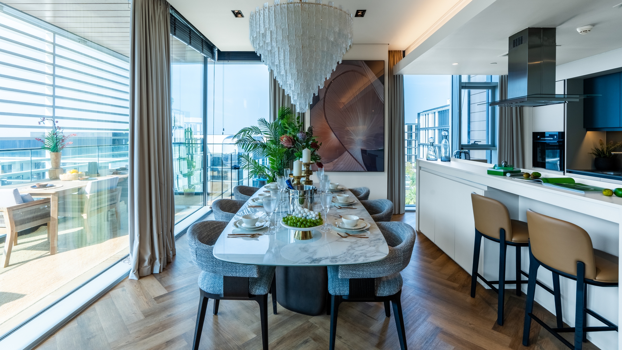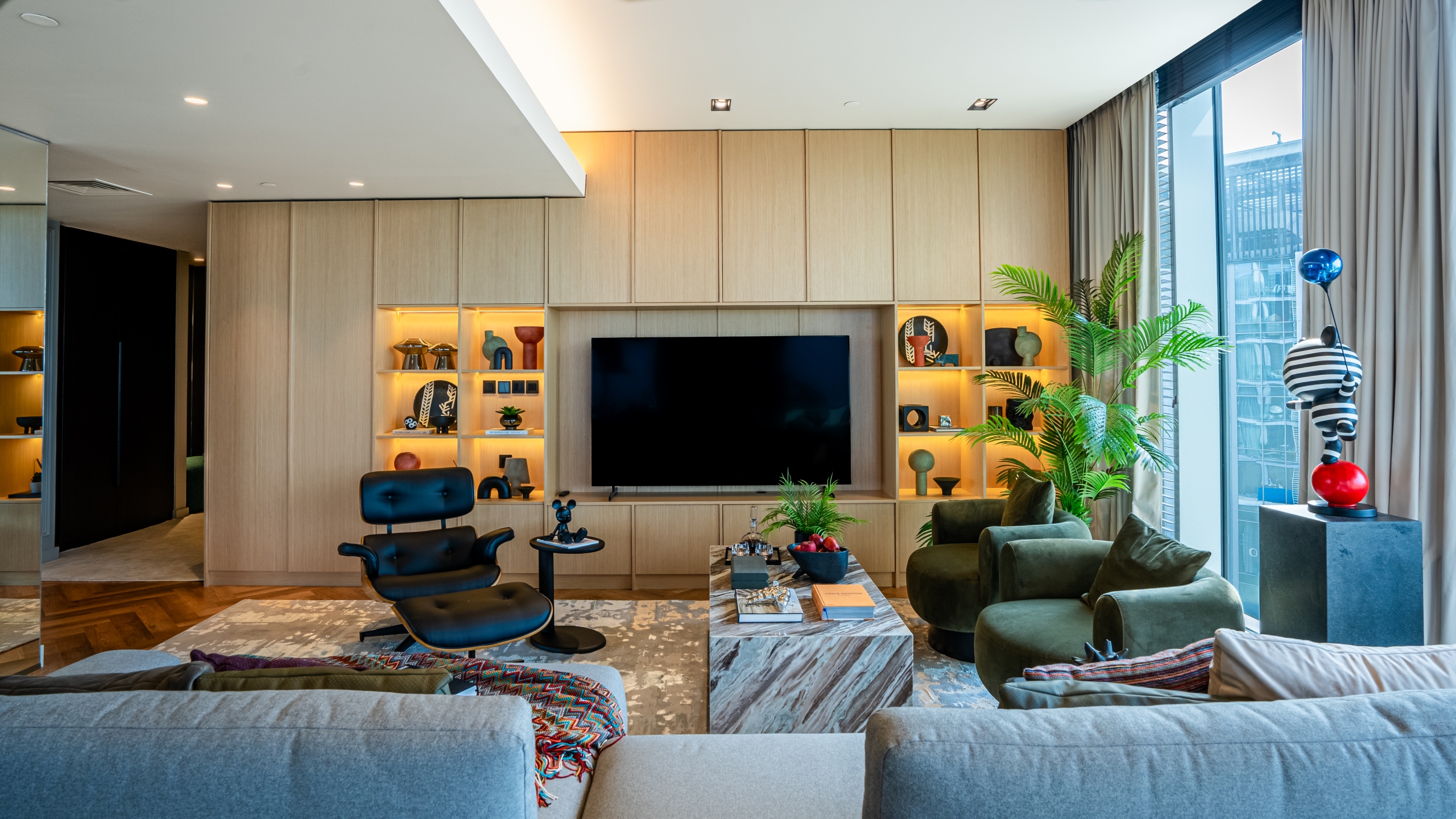 Spacious 4BR Corner Unit with Terrace, Sea Glimpse & Maid’s Room | Bluewaters Step into refined coastal living with this spacious 4-bedroom corner apartment at Bluewaters Residences, offering a blend of comfort, elegance, and modern functionality. Located in one of Dubai’s most prestigious waterfront communities, this bright and airy home boasts a generous open-plan living and dining area, framed by floor-to-ceiling windows that welcome natural light and offer partial sea views along with lush green surroundings. The fully equipped kitchen features sleek cabinetry and high-end appliances, making it ideal for both everyday use and entertaining. Each of the four bedrooms is well-sized, fitted with built-in wardrobes, and complemented by en-suite or adjacent bathrooms, while the master suite provides added space and privacy. A dedicated maid’s room with separate access and a utility area add convenience for families. The standout feature is the expansive corner terrace—perfect for morning coffee, relaxing evenings, or hosting guests, all while enjoying a glimpse of the sea and the vibrant atmosphere of Bluewaters Island. Residents also enjoy a host of world-class amenities, including infinity pools, a modern fitness center, landscaped gardens, walking trails, a retail and dining promenade, children’s play areas, and 24/7 concierge and security services. This home is ideal for those seeking a peaceful yet well-connected lifestyle in one of Dubai’s most desirable destinations.